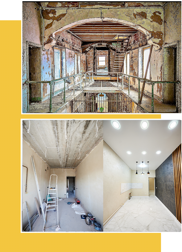 - Restoration: Time may have left its mark, but we’re here to undo its effects. From preserving the charm of vintage aesthetics to breathing new life into historical structures, our restoration services combine modern techniques with a deep respect for the past. Let us take your property on a journey through time, restoring its former glory while maintaining its unique character.